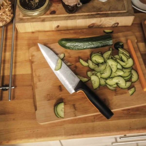 En stor kokkekniv fra Fiskars, er super lækkert til når det skal skæres salater og meget andet.