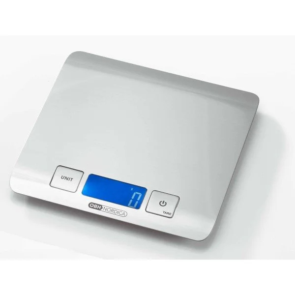 Elektronisk køkkenvægt fra OBH, super nøjagtig og funktionel bagevægt. Vægten måler 20 x 20 cm. så der er plads til en stor skål, vægten har et stort display med baggrundslys hvilket gør det meget nemt at aflæse tallene.