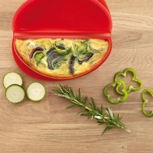 Med en lékué omeletform er det nemt og hurtigt at lave en lækker omelet i en mikroovn. En omelet er et lækkert måltid og kan laves i utallige varianter. Den største udfordring for de fleste er som regel at folde omeletten, så den også ser pæn ud. Problemet med at folde omeletten er løst simpelt og enkelt med denne omeletform, som netop har form som en omelet.