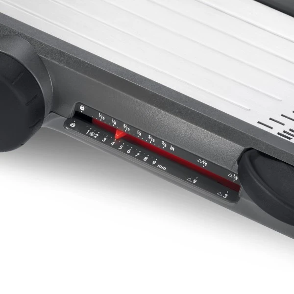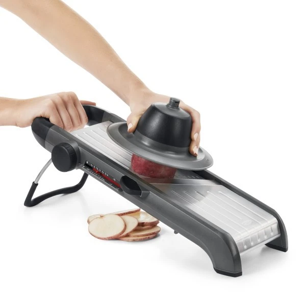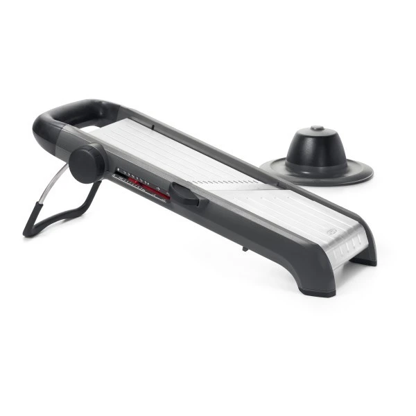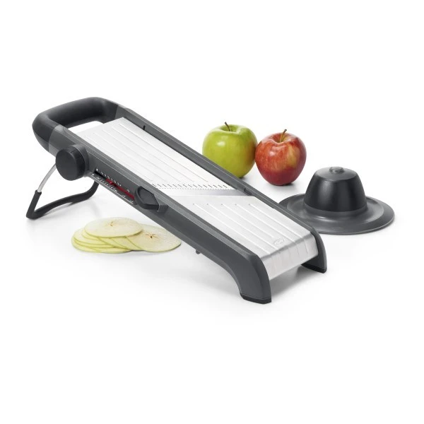 Chefs mandolinjern fra OXO good grips er et kraftig mandolinjern i rustfrit stål. Kan stilles 0,5 mm. og op til 9 mm. i tykkelsen med 0,5 mm. interval.