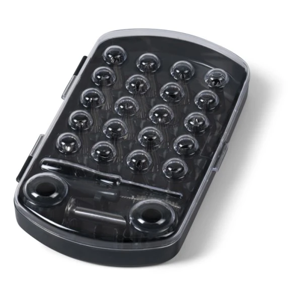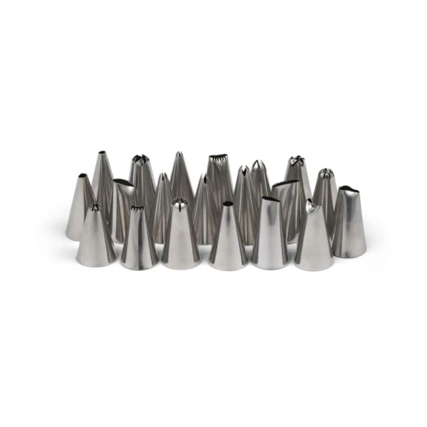 Dette sæt består af 20 forskellige tyller på 3-4 cm. Derudover kommer der en Berlinertyl i rustfrit stål, to tylkoblere og en lille rensebørste.