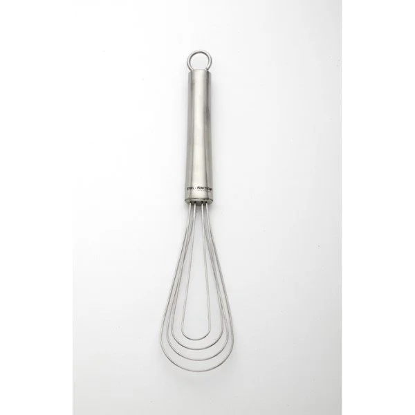 Pandepiskeris 27 cm i rustfrit stål, også kaldet en fladpiske. Kom lettere helt ud i kanterne af gryden, så saucen ikke brænder på.