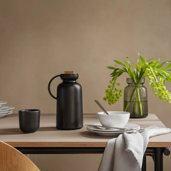 En Sort Silhouette termokande fra Eva Solo, giver et klassisk og lækkert udtryk til bordet.
