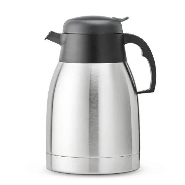 Stor termokande i rustfrit stål på 1,5 liter. Der kan være en hel kande kaffe i denne termokande, dette er meget praktisk da de fleste kaffemaskine brygger 1,3 liter.Termokanden holder godt på varmen, en helt fyldt kande vil holden varmen i minimum 6 timer. Kanden har trykknap på låget hvilket gør det meget nemt at betjene den med en hånd.