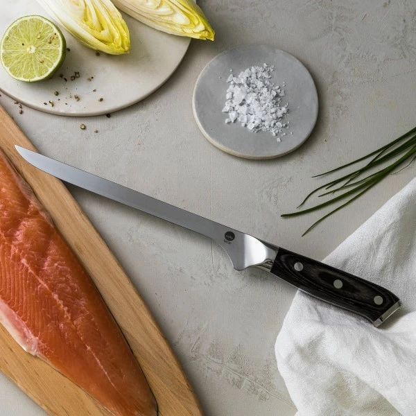 Rigtig god filetkniv fra Wilfas knivserie 1948. En filetkniv er super god til at skære tynde skiver og en super god kniv til fisk.